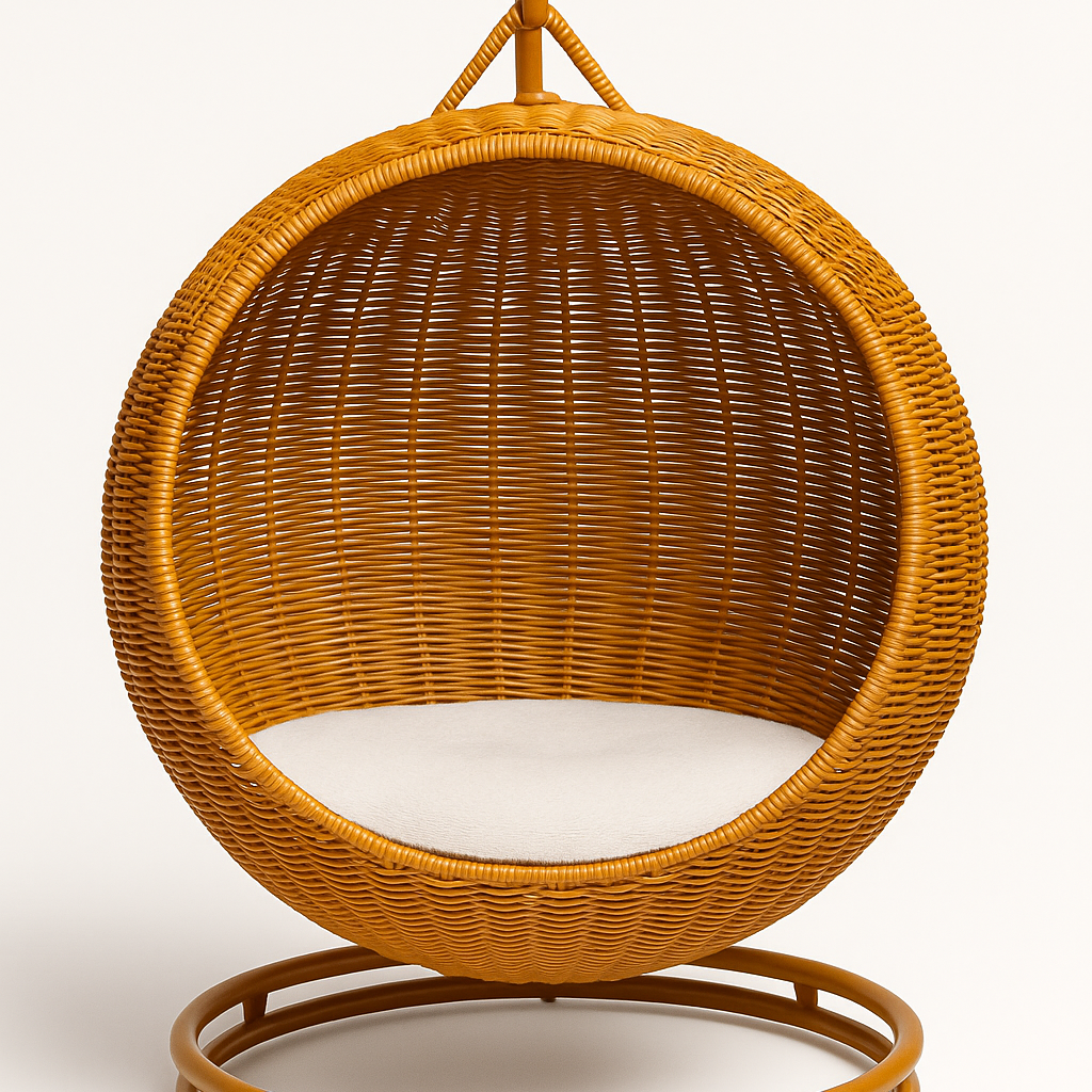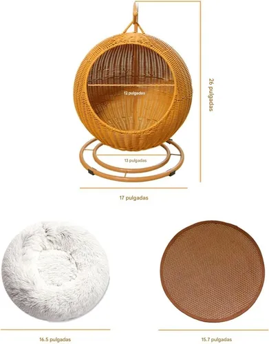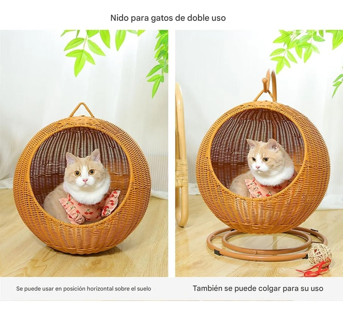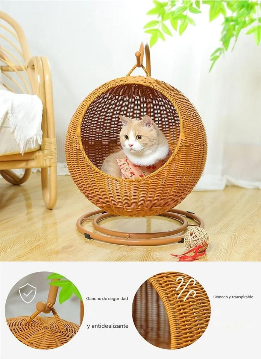 La Cama Colgante Tipo Cesta combina un estilo moderno con la comodidad que tu gato necesita para descansar y jugar. Fabricada en hierro sólido y ratán de alta calidad, es estable, duradera y fácil de mantener, ideal tanto para interiores como exteriores.