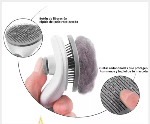 • Botón de limpieza con un solo clic: después de cepillar a tu mascota, simplemente haz clic en el botón. El obturador se despliega, separando el cabello cepillado de la aguja de metal, luego limpia el cabello. El botón del cepillo para gatos para eliminar el pelo corto en la parte delantera ahorra tiempo y energía al asear y limpiar.
