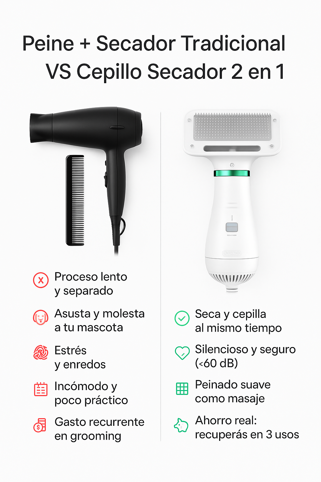 🔹 Ahorro real: en solo 3 usos recuperás lo que gastarías en grooming.