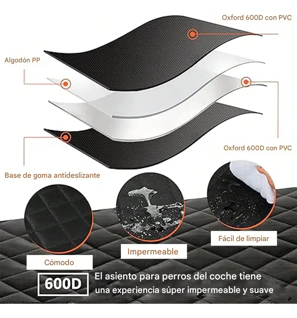El asiento de coche para perros Petgo garantiza la seguridad y el confort de tu mascota mientras protege tu vehículo. Fabricado con resistente tela Oxford, es antideslizante, anti-arañazos y muy fácil de limpiar, ideal para mantener el coche en perfectas condiciones.