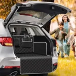 Fácil de instalar y quitar. Puedes instalar este protector de maletero en solo unos segundos, simplemente cierra rápidamente las dos hebillas ajustables alrededor del reposacabezas o colócalas al maletero con velcro, tipo plegable, fácil de llevar, almacenamiento conveniente, cuando el protector de maletero del automóvil colocado en el maletero del automóvil puede ahorrar espacio.