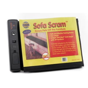 El Sofa Scram es un dispositivo electrónico de última generación que utiliza una almohadilla sensible a la presión para detectar la presencia de su mascota. Cada vez que su mascota pise la almohadilla, sonará una fuerte alarma audible. Esto tiene la intención de asustar a la mascota y alejarla de los muebles o fuera del área de límites. El Sofa Scram funciona mejor cuando se usa en combinación con un programa de entrenamiento de mascotas como se describe a continuación.