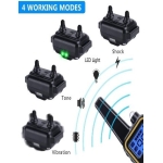 Collar de adiestramiento canino electrónico que lo ayudara a controlar y entrenar a su perro de manera efectiva, a través de una serie de funciones que incluyen alerta de vibración, advertencia sonora o descarga. Puede controlar al perro de forma remota para que deje de ladrar, morder o pelear.