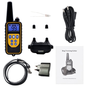 Collar de entrenamiento para perros con control remoto impermeable de profundidad IP57, el receptor está equipado con una columna conductora de silicona más segura, distancia de control remoto de 800 metros.