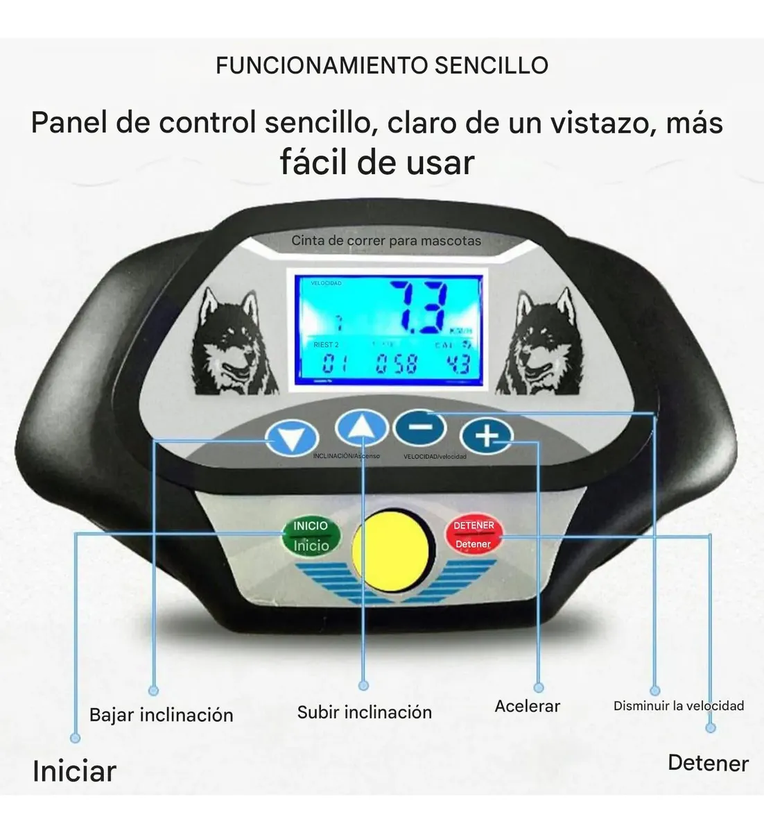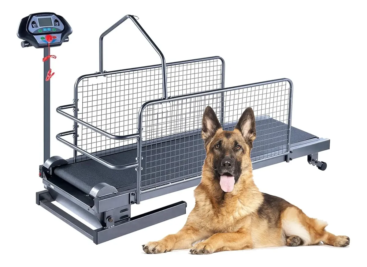 Presentamos la cinta de correr para perros de Petgo, diseñada para brindar un entrenamiento seguro, cómodo y eficiente para tu mascota. Incorpora pasamanos laterales que funcionan como barandillas, ayudando a mantener a tu perro en el camino durante el ejercicio. Además, cuenta con una barra transversal que permite sujetar los cinturones para lograr una rutina más controlada y efectiva. Está equipada con una pantalla funcional que muestra el tiempo, la distancia recorrida y las calorías, junto con modos ajustables que se adaptan a diferentes niveles de actividad. Su sistema de conducción silencioso evita ruidos molestos, reduciendo el estrés y brindando una experiencia más cómoda para tu mascota. En términos de seguridad, dispone de un interruptor de protección que bloquea la caminadora y una llave de seguridad que permite detenerla de inmediato en caso de emergencia, ofreciendo mayor tranquilidad durante cada uso. Esta cinta es ideal para entrenar y ejercitar a tu perro, ayudando a mantenerlo en forma, mejorar su resistencia y prevenir problemas como la obesidad. Su estructura robusta soporta mascotas de hasta 220 libras. Además, es fácil de instalar y transportar, gracias a sus ruedas integradas que permiten moverla sin esfuerzo. Una excelente opción para fomentar la actividad física diaria y mejorar la calidad de vida de tu mascota con el respaldo de Petgo.