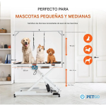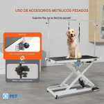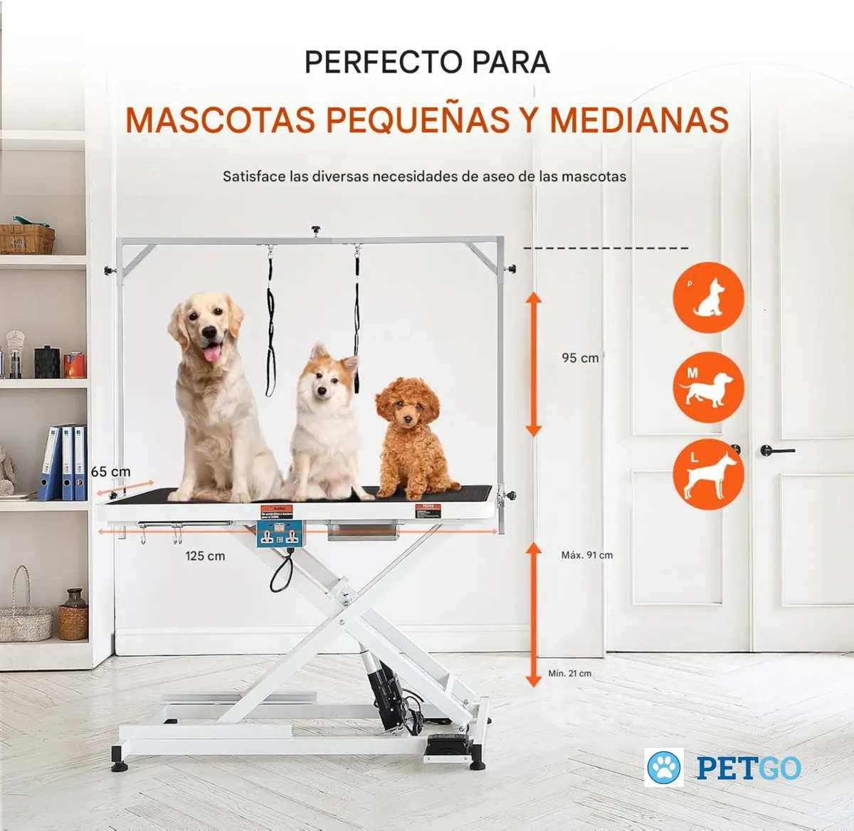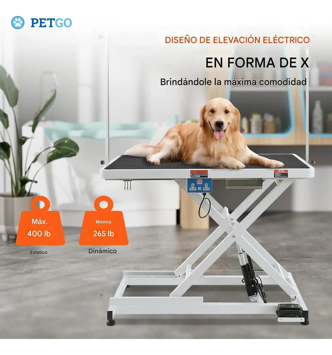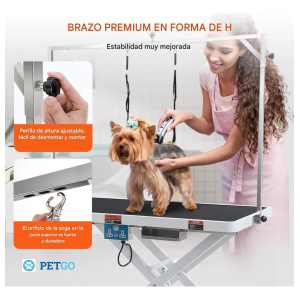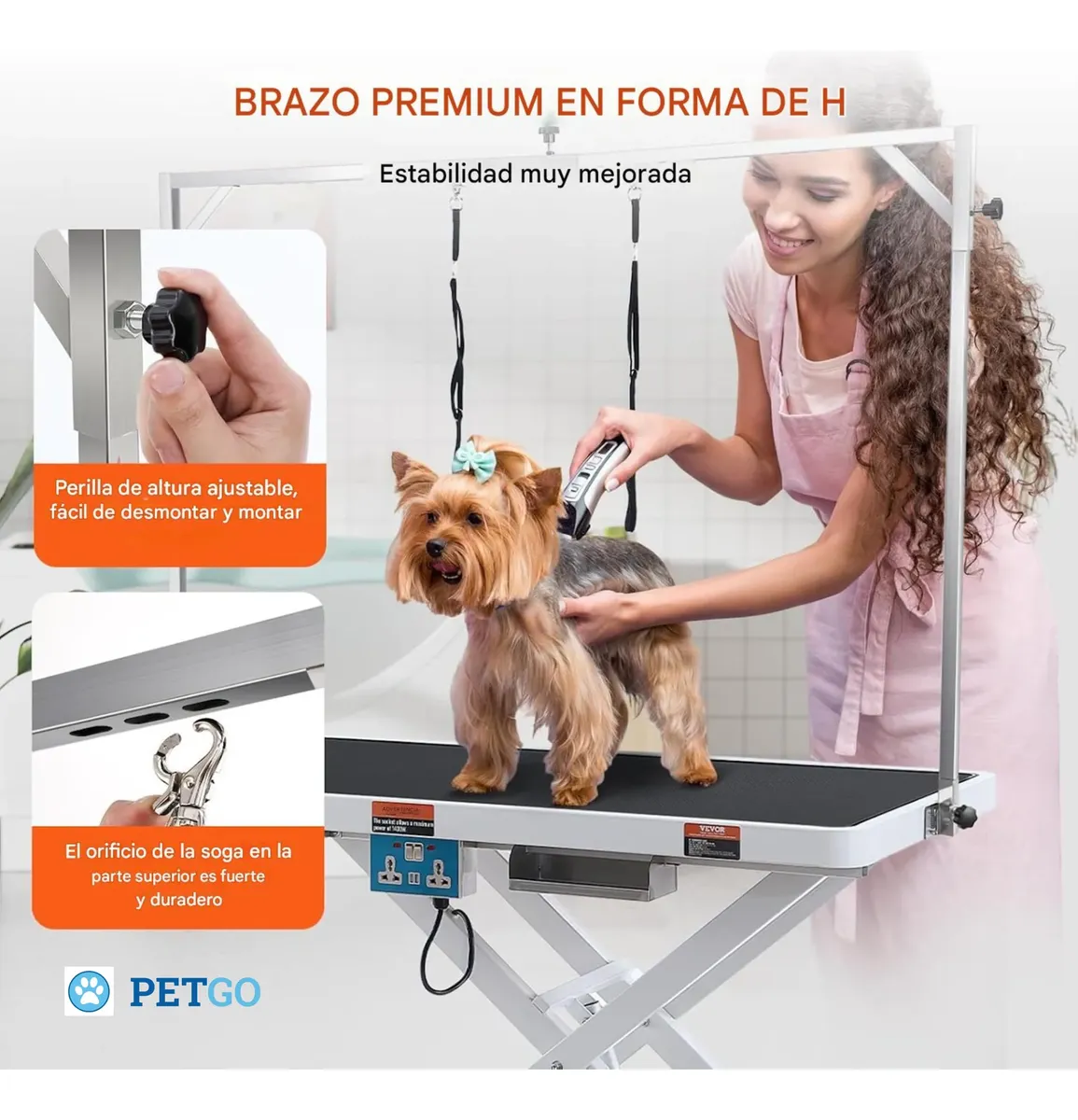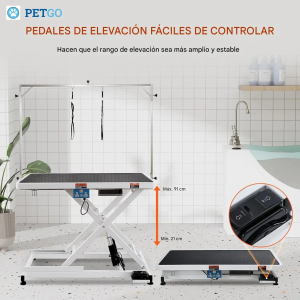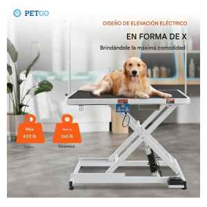 La mesa eléctrica de elevación para aseo de mascotas de la marca PETGO es la solución ideal para profesionales del cuidado de animales. Con una altura de 91 cm y dimensiones de 125 cm de largo por 65 cm de ancho, esta mesa proporciona un espacio amplio y cómodo para el aseo de perros de diferentes tamaños. Fabricada en acero inoxidable, su diseño es resistente y a prueba de agua, lo que garantiza durabilidad y facilidad de limpieza. Su peso de 48 kg permite una estabilidad óptima, mientras que el brazo ajustable ofrece versatilidad en el manejo de las mascotas, adaptándose a diversas necesidades. La mesa es plegable, lo que facilita su almacenamiento y transporte, ideal para quienes trabajan en diferentes ubicaciones. Con una capacidad de carga de hasta 181 kg, es perfecta para atender a una amplia variedad de razas y tamaños de perros, asegurando un servicio eficiente y seguro.