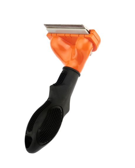 Asegúrese de mantener la cubierta protectora del borde en la herramienta cuando no esté en uso. Lo mejor es cepillarse a su mascota antes de usar la herramienta para quitar cualquier esterilla o enredos que su mascota pueda tener. Asegúrate de que el abrigo de tu mascota esté completamente seco antes de usar una herramienta de desprendimiento en tu mascota. Puedes limpiar el borde con agua tibia. Se puede utilizar un jabón suave si es necesario.