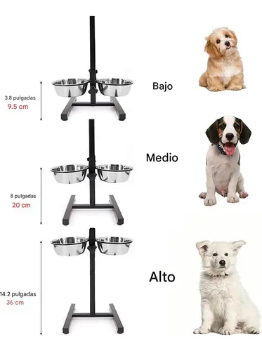 Altura ajustable: opciones de altura ajustable (5.5 a 17.7 pulgadas), este soporte elevado para cuenco de perro se puede personalizar para adaptarse a las necesidades específicas de tu perro, reduciendo la tensión en el cuello y las articulaciones.
