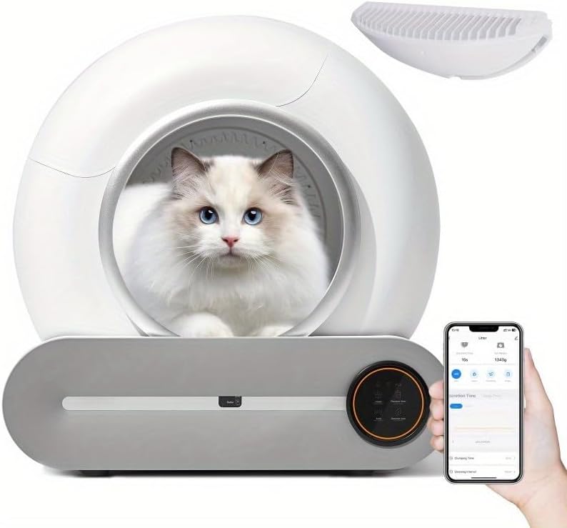 Sistema de limpieza avanzado: nuestra caja de arena de última generación incorpora un sistema de limpieza inteligente que ELIMINA EFICAZMENTE LOS OLORES y mantiene la basura a raya, creando un ambiente limpio y sanitario para su gato. La función integrada de monitoreo de datos le permite rastrear los patrones de uso de varios gatos. Con una cámara de recolección auto generativa, mantener una caja de arena ordenada es sin esfuerzo, mientras que el diseño espacioso ofrece a tu gato un amplio espacio para hacer sus negocios cómodamente. Además, nuestra caja de arena funciona silenciosamente, asegurando una interrupción mínima del ruido.